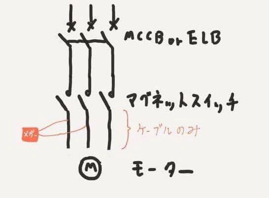 ②③④のメガーをかける準備はモーターの場合を確認して下さい。
