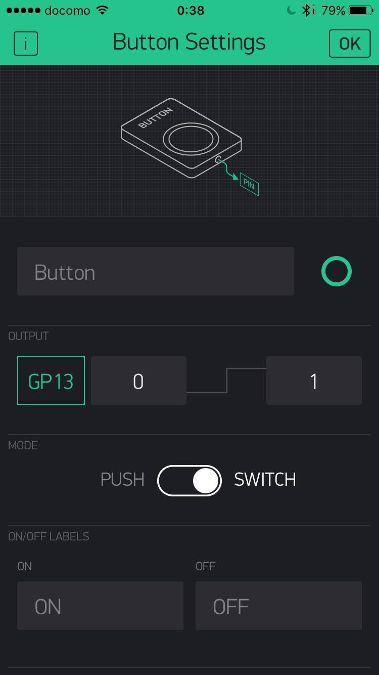 入力信号用スイッチはGPIO→スイッチ→抵抗(10KΩ程度)→グランドで接続してボタンをおすと1が0になるようにする。 LEDは動作確認用なのであってもなくても問題なし。