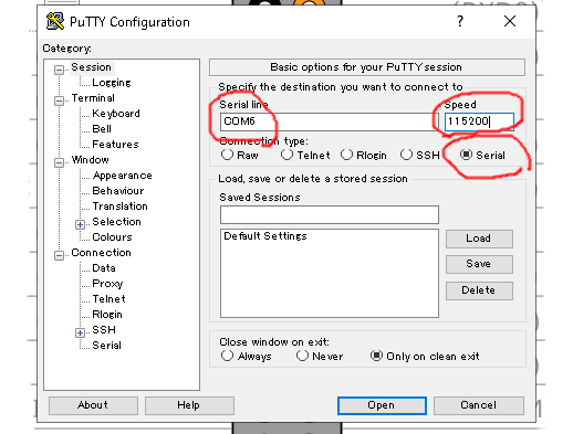 Tera Termとかでも動きますが、接続速度を115200にしないと文字化けしますので注意してください。