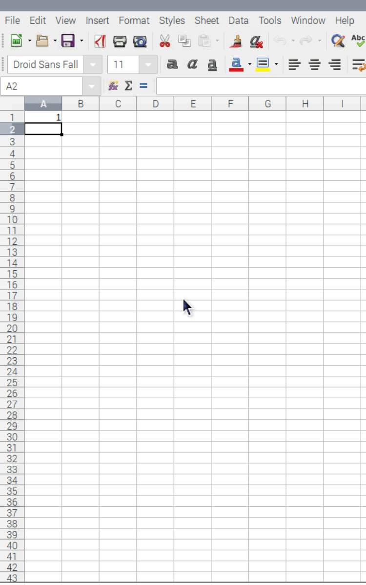 まず、1行目A 列に”1”と入れたエクセルファイルを用意します。