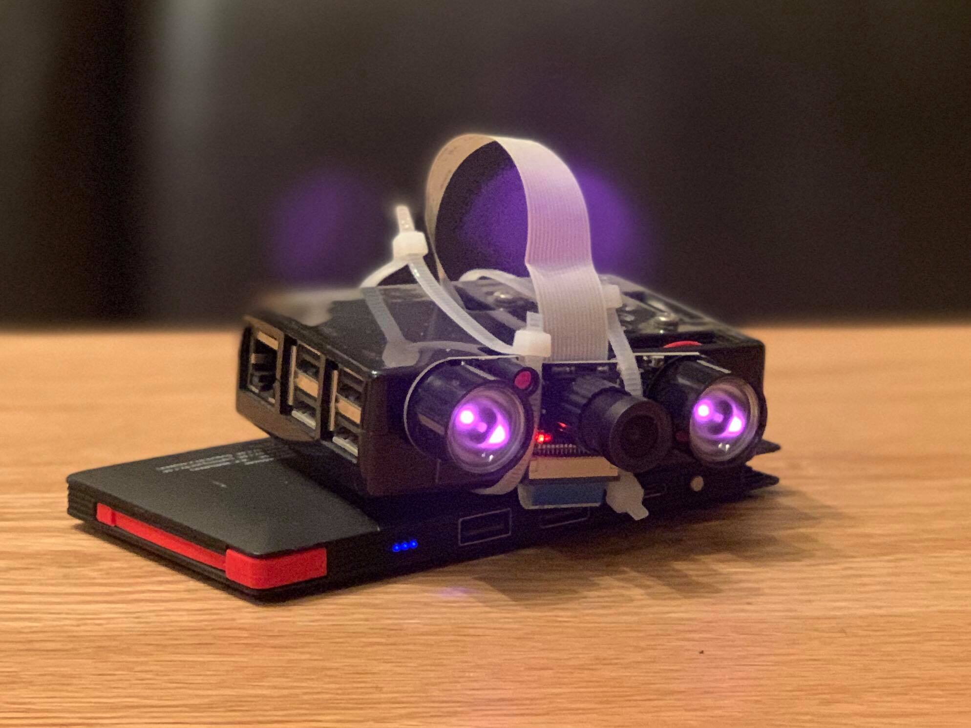 ラズパイとモバイルバッテリーをくっつけるとこんな感じです。