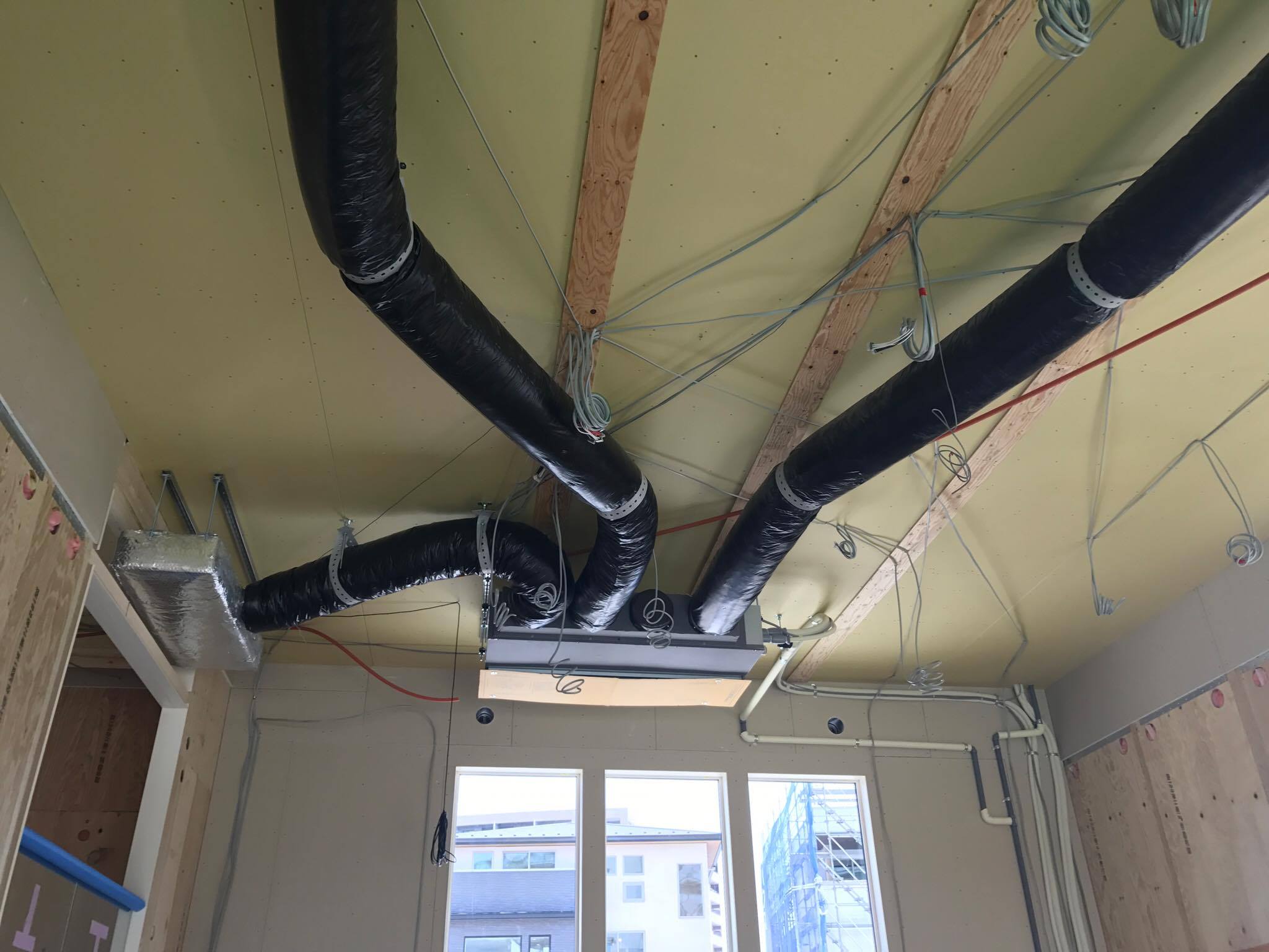 1階の天井に大きめの空調が設置されていて各部屋にダクトで送風するタイプであった。
