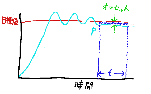 オフセット部分を積分し操作量とすることで目標値との差をなくすことができる。