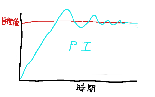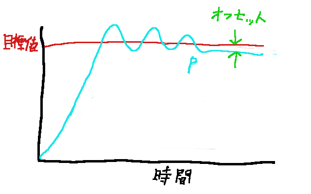 P制御のみで使われることはないがこの弱点を補うのがPI制御