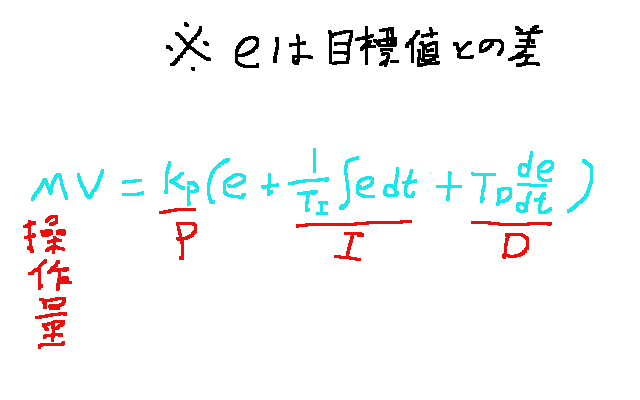 積分時間を短くすればするほど操作量への影響は大きくなっていく。ほとんどこのPI制御で目標値へ制御できるが外乱(外からの作用)があると収束に時間がかかってしまう。