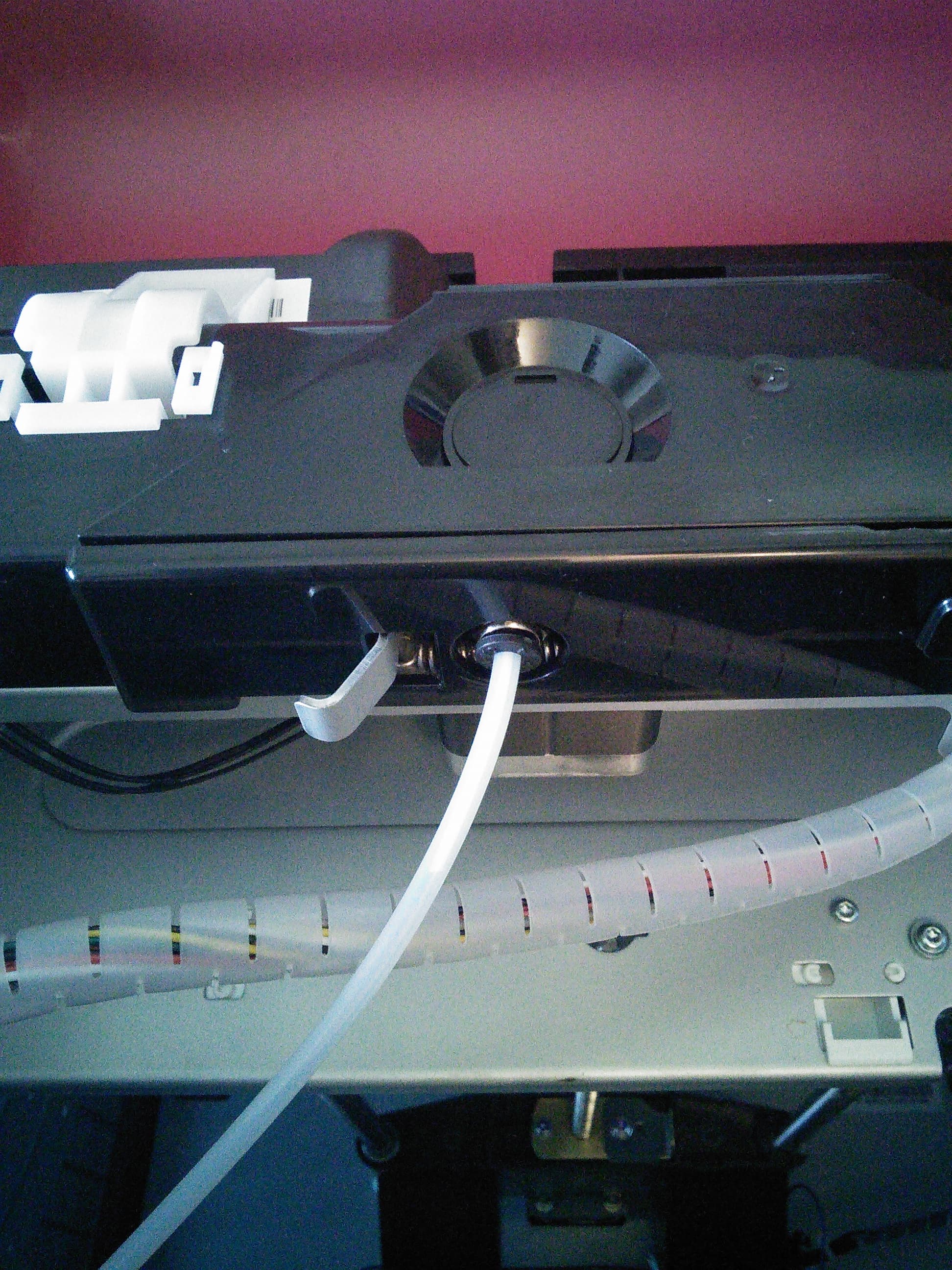 そしてカードリッジ挿入。青いテープを外して先端を写真の様に挿入する。