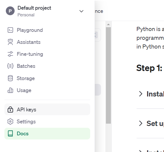まずはopenAIのアカウントを作成し、APIキーを取得します。