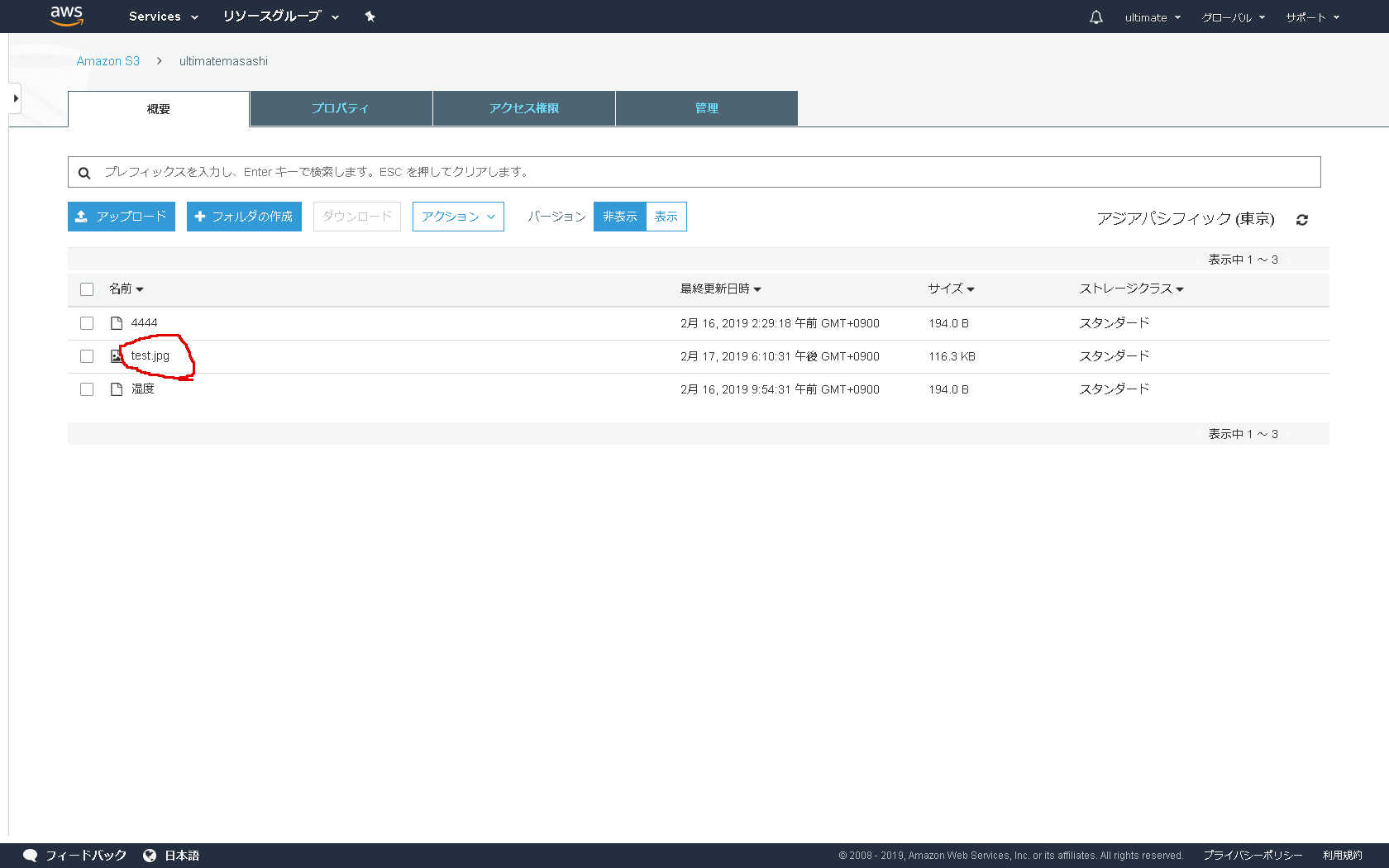 →AWSの設定、アップロードは