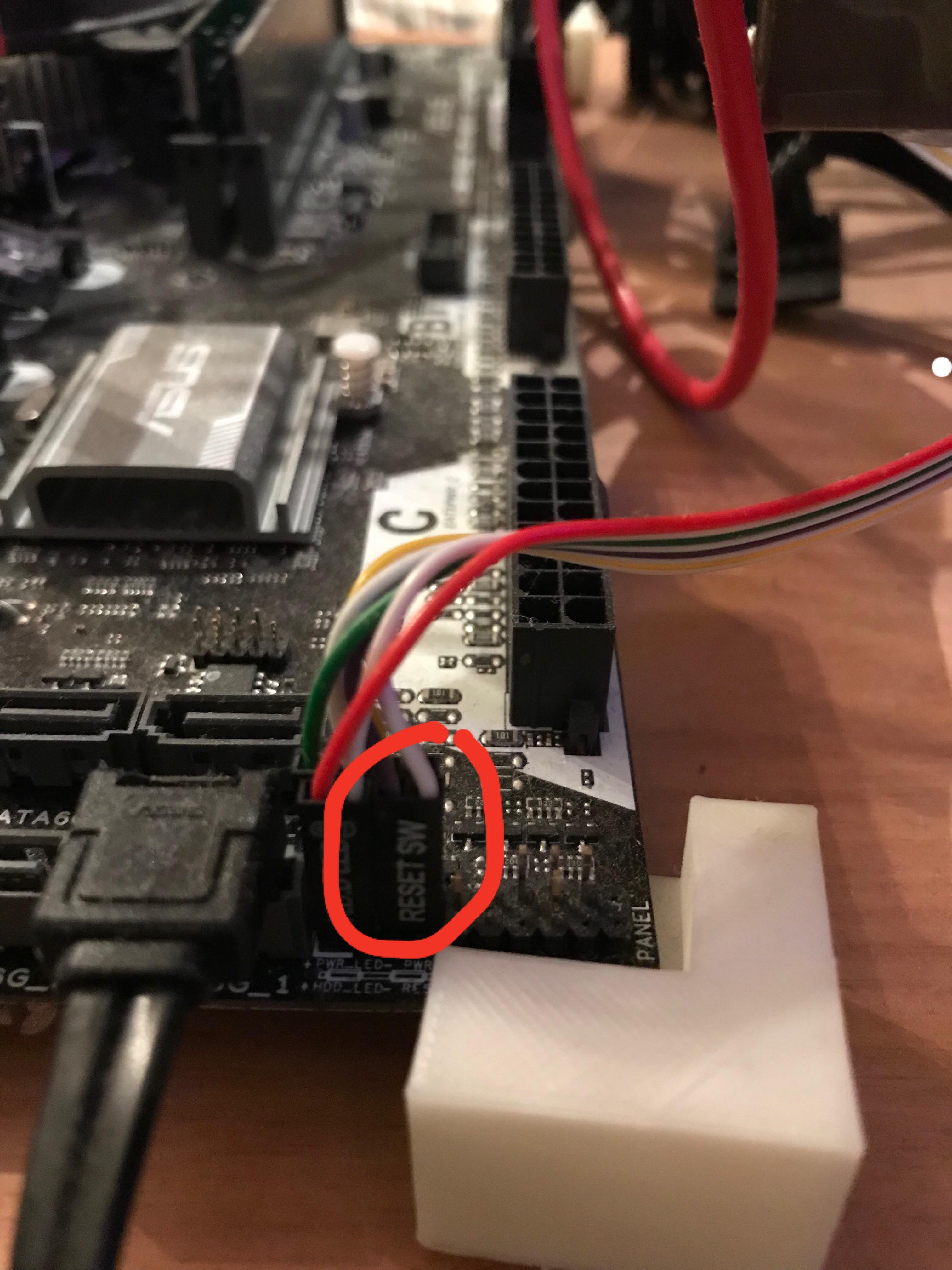 SSRリレーの2次側はマザーボードのRESETのところへ接続します。