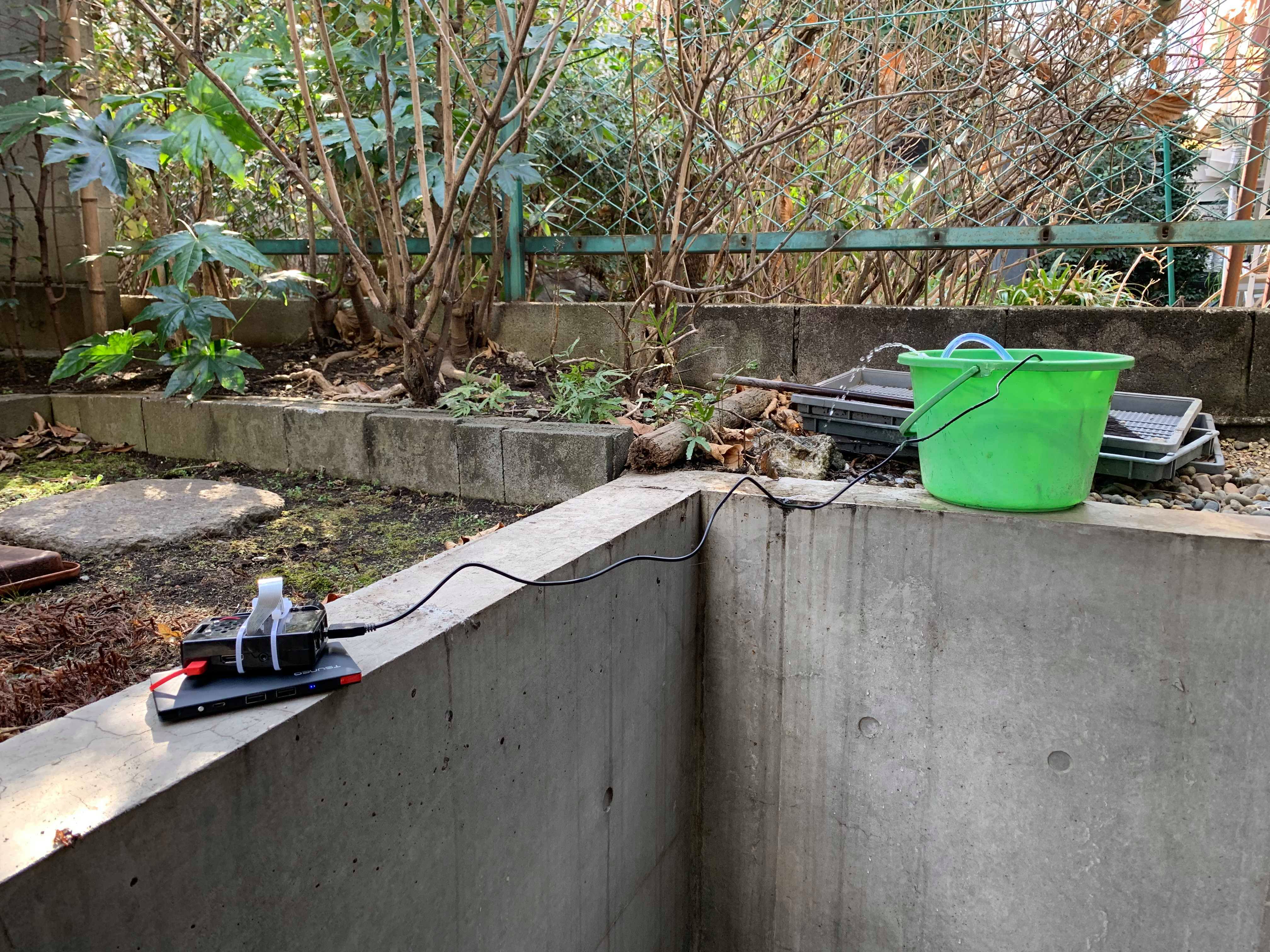 ラズパイでは5Vか3.3Vしか使えないのでUSB出力からポンプで水を出すことにした。