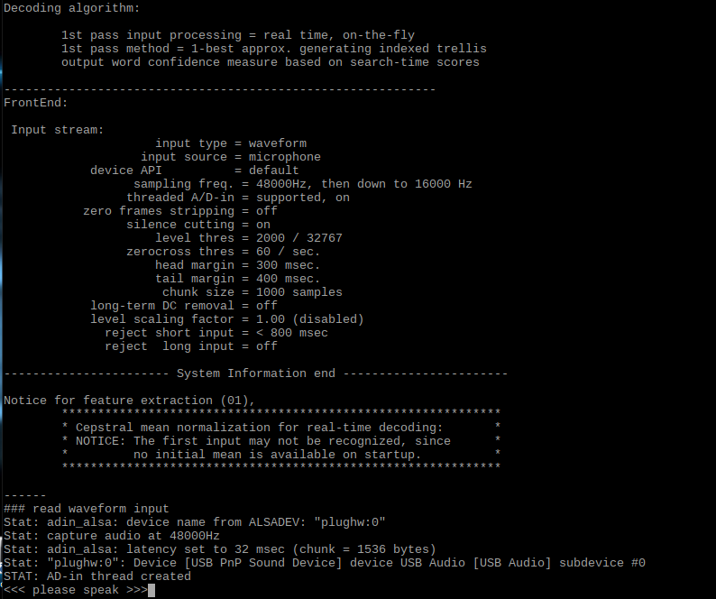 julius -C j.jconf -nostripコマンドで<<<please speak>>>と出れば成功です。